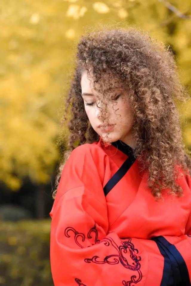 It was a fun project. We set the scene under the ginkgo tree and chose Hanfu clothing, the traditional dress of the Han Chinese people for photography outfits. But our model was not Chinese. She was blonde with curly hair and has never worn traditional Chinese dresses before.