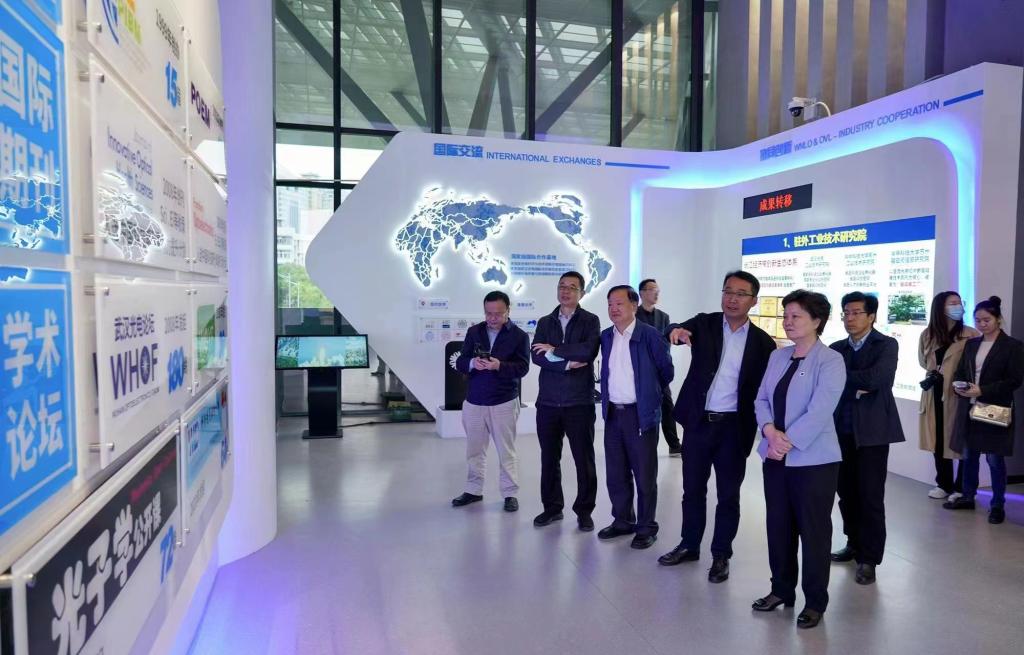 座谈会后,郝芳华一行调研了国家数字建造技术创新中心(筹)、湖北省环境与建筑实验教学示范中心。武汉理工大学校长杨宗凯与郝芳华共同参观了武汉光电国家研究中心。学校办公室、科技处、人工智能教育学部等单位负责人参加调研。
