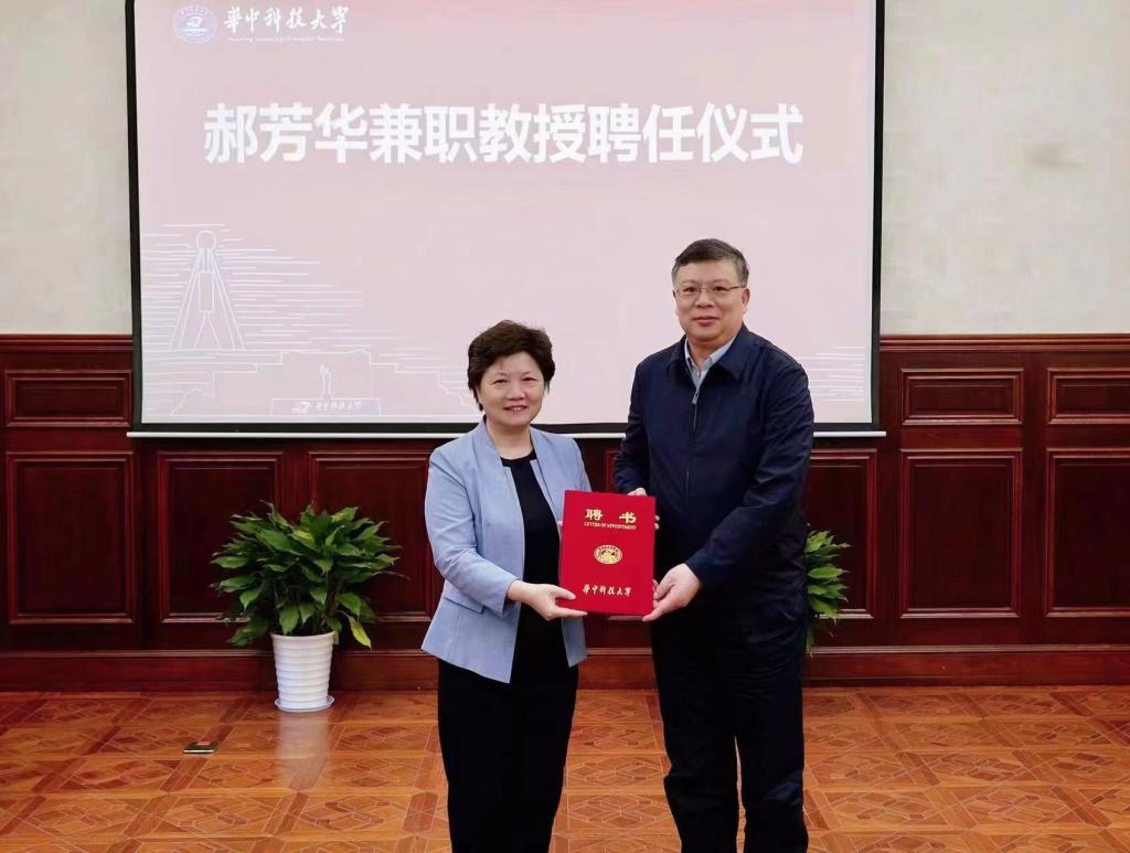 尤政为郝芳华颁发华中科技大学兼职教授聘书