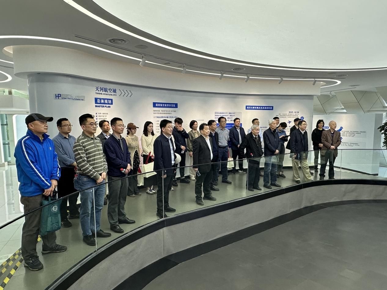 在空港新城展示馆,调研人员一行听取讲解员介绍黄陂区发展现状和新校区区位情况。新校区选址于黄陂区盘龙城开发区,东临航城西路,西临武汉最大郊野湿地公园——府河湿地公园,南临麦家湖,北临任凯湖,该地交通便利,周边配套设施逐步完善,具有极大的发展潜力。工作人员从地理优势、区域规划以及对学校未来发展的助力等多方面进行阐述,让大家对新校区的战略意义有了深刻认识。